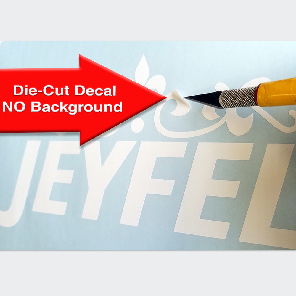 • Die Cut Vinyl, NO background color. Background color in the picture is shown for contrast and display purposes only. Consider the color of your surface when making color choices.