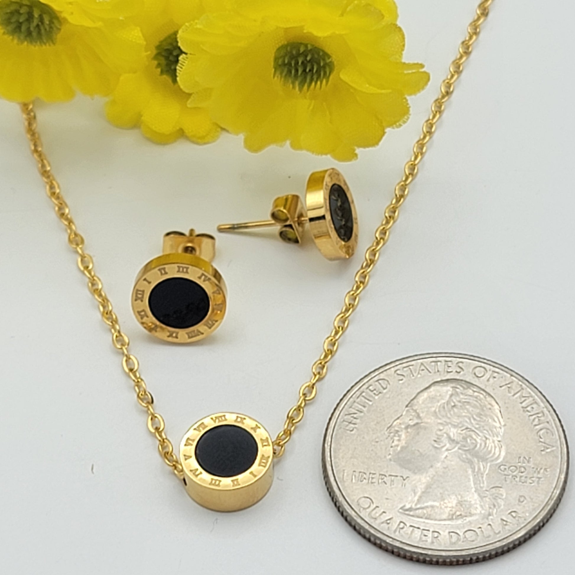 Sets - Stainless Steel - Yellow Gold Plated. Roman Numbers. *Premium Q*